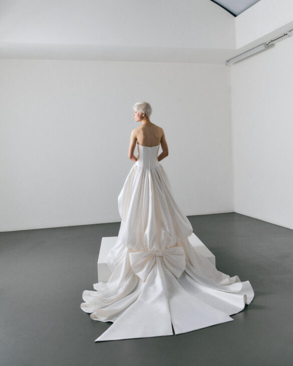 Voor Viktor & Rolf is een trouwjurk niet zomaar een feestjurk. Het is een sculptuur, een idee, een statement. In deze collectie vind je bijgevolg alle elementen waar het modehuis om bekendstaat terug: dramatische volumes, uit de kluiten gewassen strikken en bloemapplicaties, die eerder architecturaal dan romantisch aanvoelen. “We wilden geen traditionele bruidsjurken ontwerpen.” aldus Viktor Horsting. “De bruid van nu is zelf- en modebewust. Ze wil geen kostuum dragen, maar een expressie van wie ze is tonen.” Haar trouwdag is dus geen verkleedpartijtje, maar met de juiste bruidsjurk, staat haar sprankelende persoonlijkheid centraal.